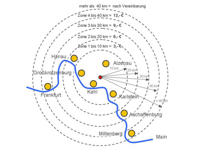Die An- und Abfahrtskosten richten sich nach der Entfernung.